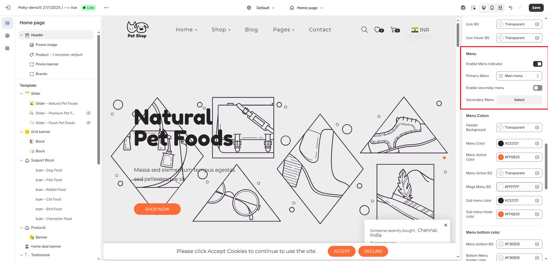 • Click "Add Menu " and enter a Name (e.g., "Shop," "About Us," "Contact").