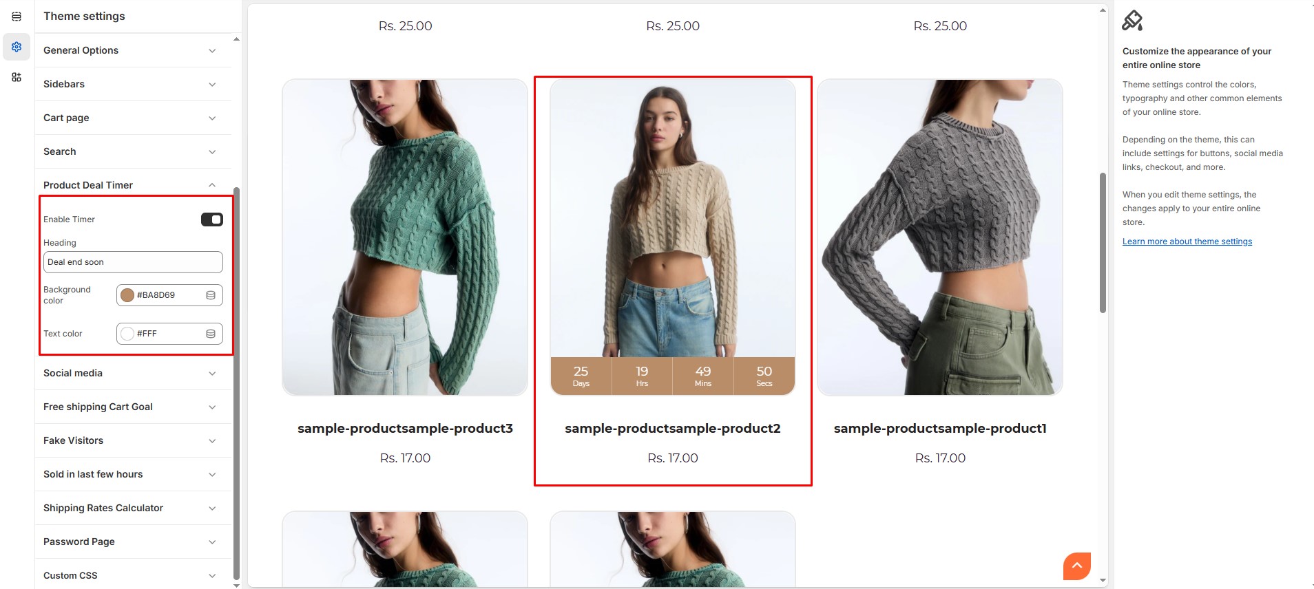 The Product Deal Timer Settings allow you to enable and customize a countdown timer for time-sensitive deals and promotions.