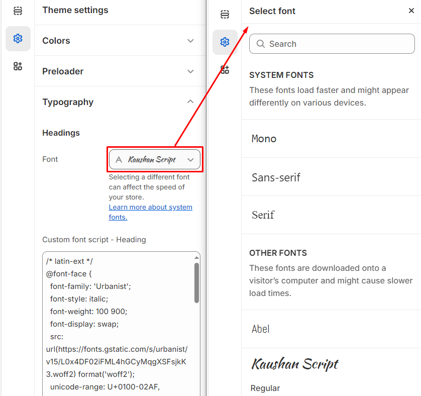 • For subheadings or other text, you can use Google Fonts or Shopify Fonts.