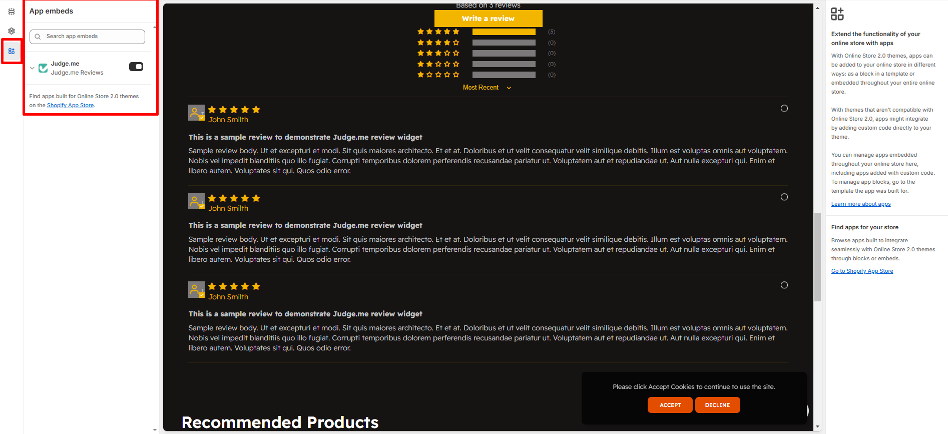 Follow the setup instructions to add the review section to your product pages (App Integration)