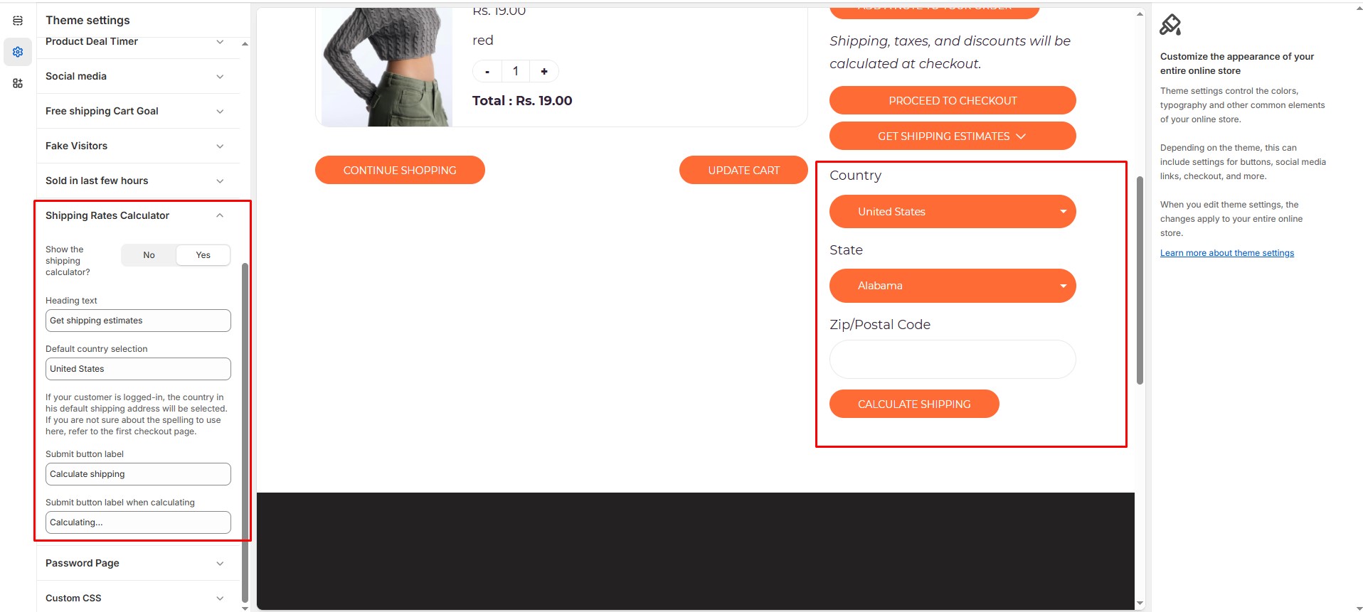 • Heading Text: Adds heading to the shipping calculator.